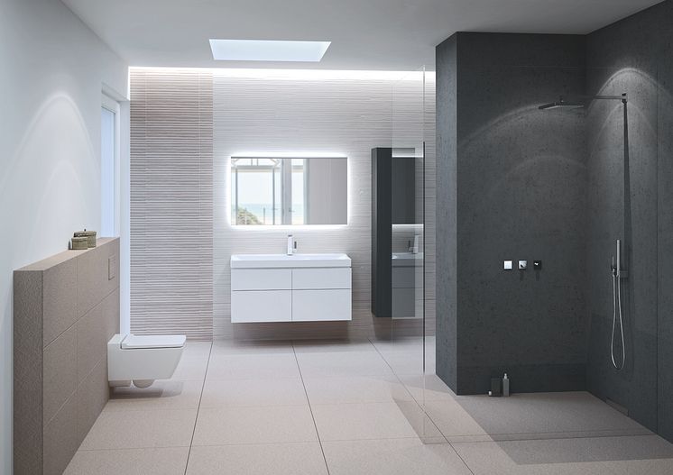 Seinän eteen koteloitu seinä-wc, Duofix-asennuselementti, kylpyhuonekuva