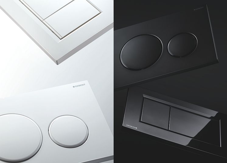 Sigma20- ja Sigma30-huuhtelupainikkeet tone-in-tone valkoinen ja musta