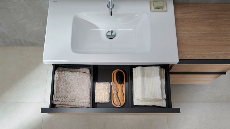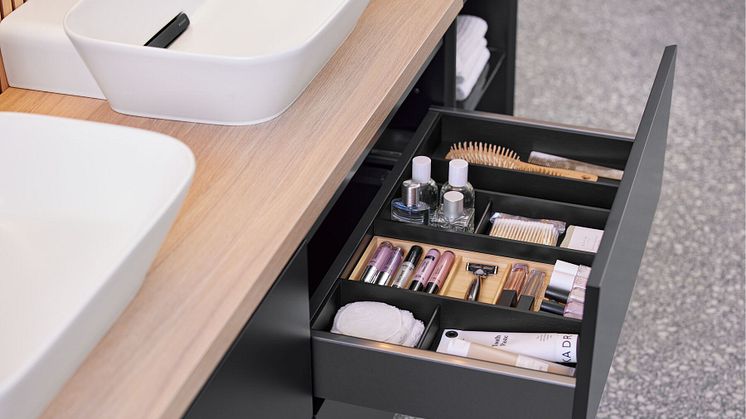 Geberitin tyylikkäät laatikonjakajat sujuvoittavat arkea. Ne pitävät kosmetiikan ja kylpytuotteet järjestyksessä sekä helpottavat laatikoston puhtaanapitoa.