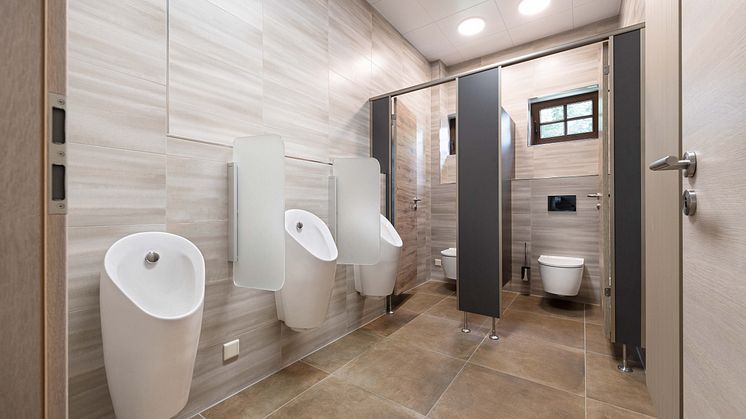 Julkisissa tiloissa vesikalusteiden valinnalla voi vaikuttaa kiinteistön vedenkulutukseen. Geberitin valikoimasta löytyy niin vedettömiä kuin huuhtelutekniikalla varustettuja pisuaareja, joiden vedenkulutusta voidaan säätää tarkasti.