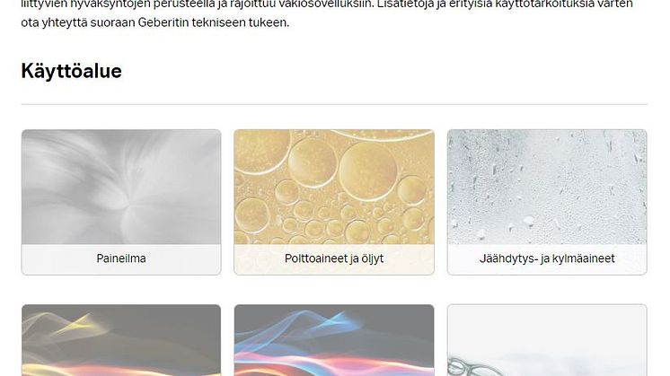 Geberit Teollisen käytön verkkotyökalu löytyy osoitteesta: teollisuussovellukset.geberit.fi