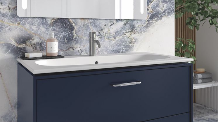 IDOn uusi kalustesarja kiehtoo väripaletillaan – sävytä kylpyhuone hienostuneella sinisellä