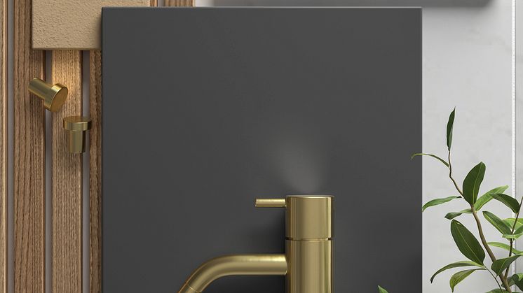 Kylpyhuoneeseen viimesilauksen tekevät pienet yksityiskohdat kuten sävy sävyyn valitut ovenkahvat, vetimet, hanat ja seinä-wc-istuimen huuhtelupainike. Ruostumaton teräs ja kromi ovat klassisia, musta luo modernin ilmeen ja messinki antaa lämpöä ja luonnollisuutta erityisesti patinoituessaan.