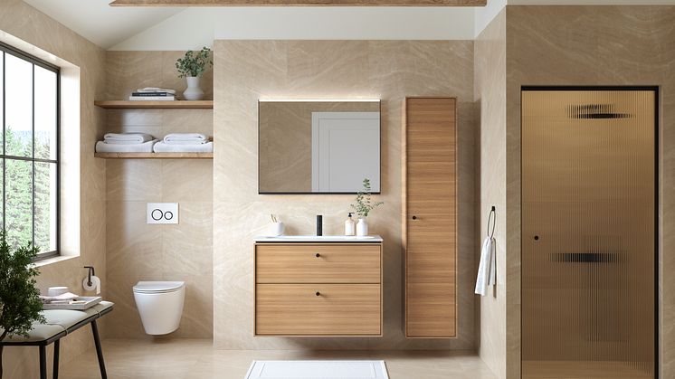 Kylmästä lämpimään – Vuoden 2025 tyylikkäin kylpyhuone on kiven ja puun sävyttämä