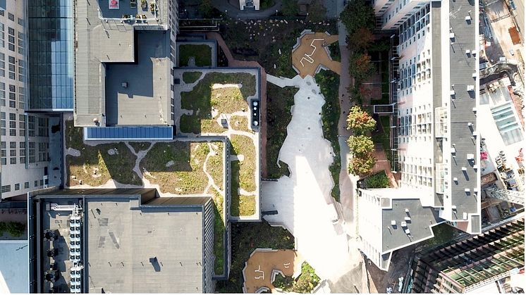 Kuumien kattopeltien ja pikipihojen sijasta kattopuutarhoja, hulevesipuistoja ja viilentäviä varjoja