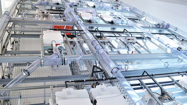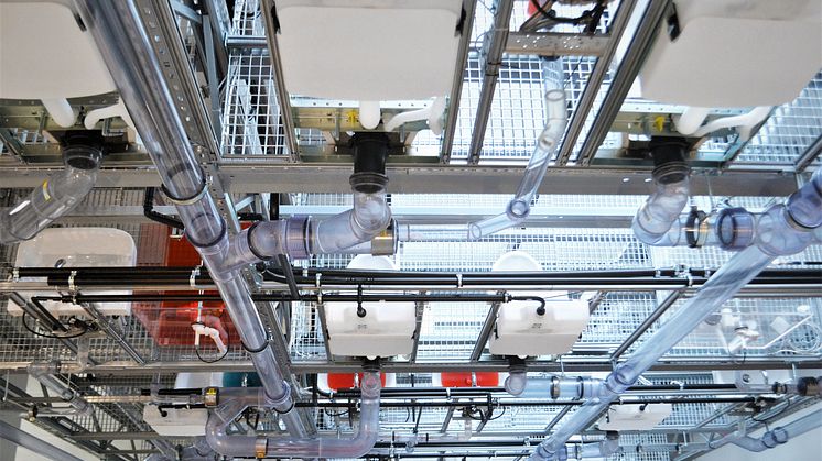"Olemme rakentaneet torniin oikean- ja vääränlaisia putkistoja. Voimme esittää vaikkapa, mitä tapahtuu, jos pystykokoojan pohjakulma tai kerrosten haaraviemärit on rakennettu väärin", Polvi kertoo.