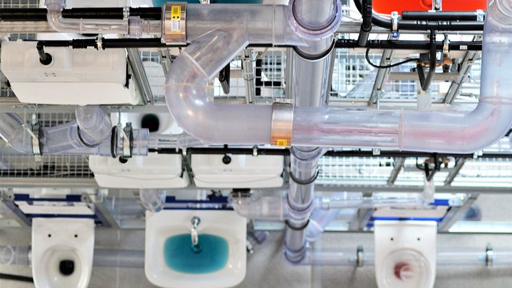 Mistä johtuu vesilukon kuivuminen? Entä vettä roiskiva wc? Elokuussa Vantaalle IDO- ja Geberit Showroomiin valmistunut Pohjoismaiden ainoa viemäröintitorni konkretisoi hydrauliikkaongelmia ennennäkemättömällä tavalla.