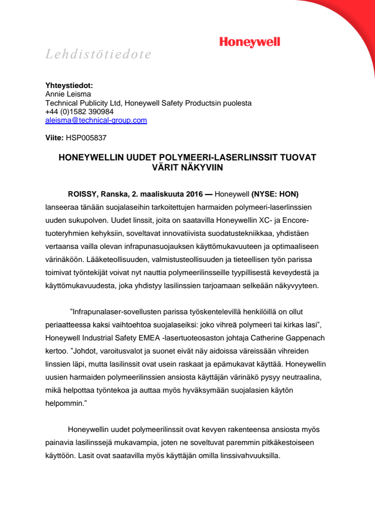 Honeywellin uudet polymeeri-laserlinssit tuovat värit näkyviin