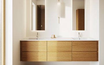 Retrotrendi on tullut jäädäkseen kylpyhuoneisiin – harkituilla väreillä, muodoilla ja materiaaleilla voit luoda tilan, jossa menneisyyden henki kohtaa nykypäivän tunnelman. Tässä kylpyhuoneessa suunnittelijamme ovat ammentaneet inspiraationsa 60- ja 70-lukujen lämpimistä, ilmeikkäistä tyylisuuntauksista ja luoneet tunnelman, jossa nostalgia sulautuu saumattomasti moderniin estetiikkaan.
