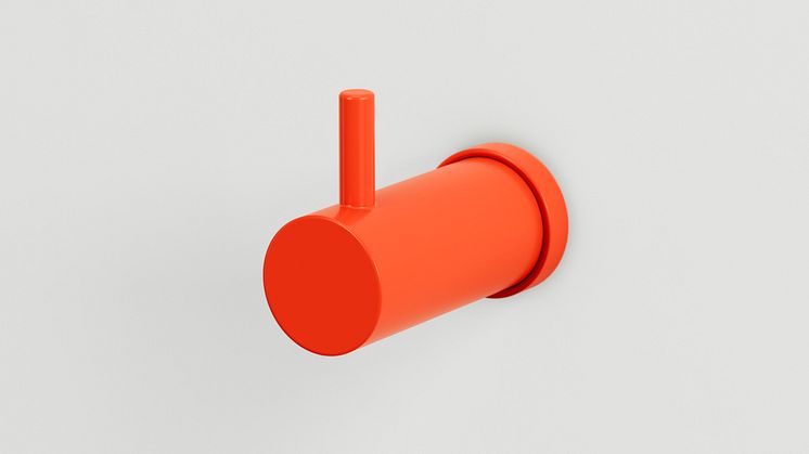 Sininen luo kontrastia hienovaraiseen väri-ilotteluun punaisen, oranssin ja keltaisen sävyissä. Viskan Shade 100 NCS S 2060-R80B. Pyyhekuivain Line NCS S 0585-Y70R.