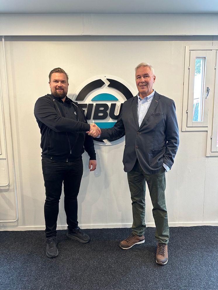 Iveco Busin väistyvä välittäjä Risto Laurila (oik) on hyvillään siirtämässä vastuun Iveco Busin Suomen edustuksesta Fibusin toimitusjohtajalle Timo Haarani