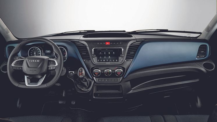 The New Daily provides the comfortable living conditions and driving experience of a passenger car. The new Hi-Connect infotainment system with voice recognition enables the driver to mirror their mobile device with Apple Car Play and Android Auto™ and use their apps in full safety while driving. It features a 7" screen, DAB radio, rear camera display, and TOM TOM car and truck navigation system, and IVECO’s Driving Style Evaluation system that provides real-time advice.