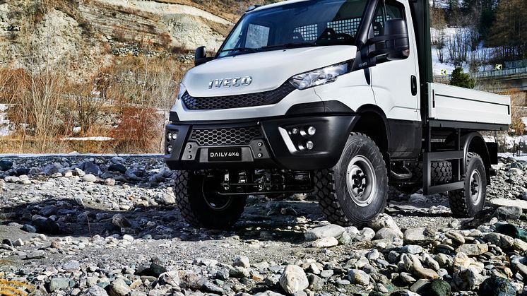 Ajoneuvo kuvastaa ja korostaa uuden Dailyn keskeisimpiä arvoja - voimaa ja monipuolisuutta - ja erottuu joukosta ainutlaatuisilla ominaisuuksillaan. Uusi Daily 4x4 on saatavilla kahtena versiona, tavallisella ohjaamolla kahdella eri akselivälillä (lyhyt 3050 mm ja pitkä 3400 mm) sekä Crew Cab -versiona 3400 mm akselivälillä, jolloin sen kyytiin mahtuu 7 henkilöä.