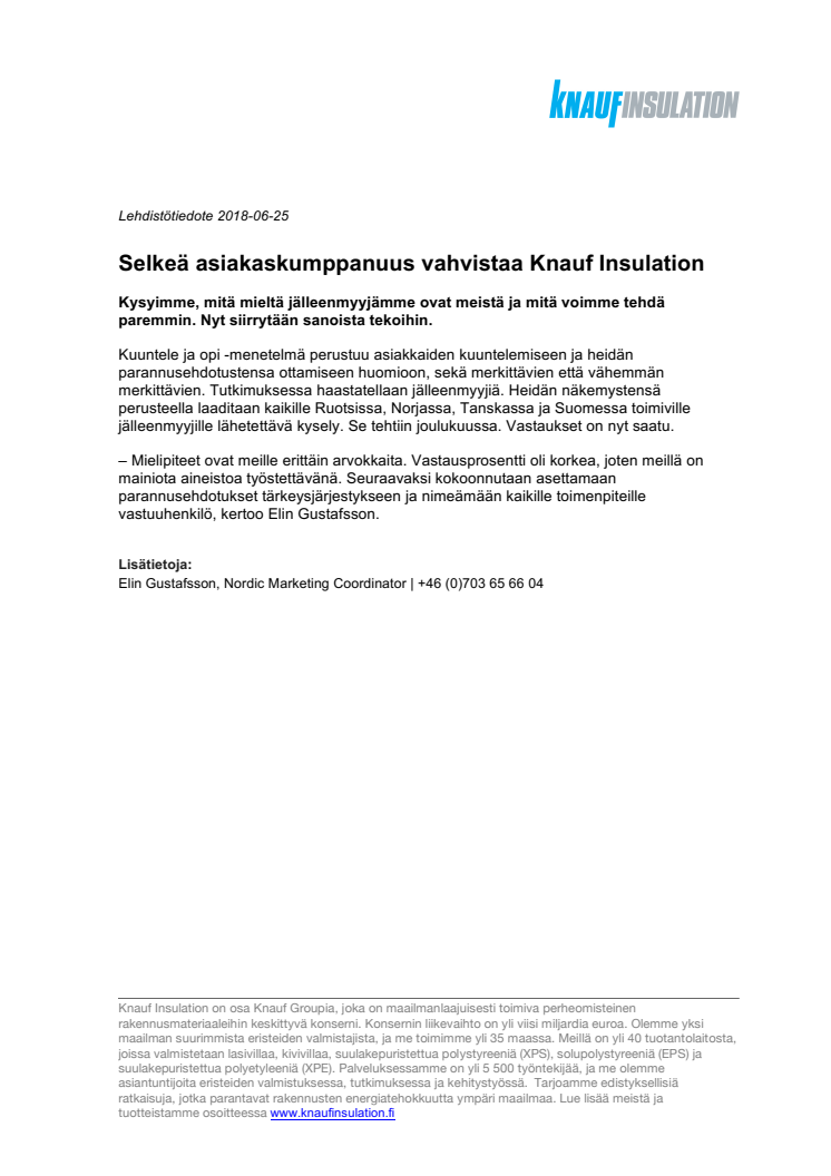 Selkeä asiakaskumppanuus vahvistaa Knauf Insulation