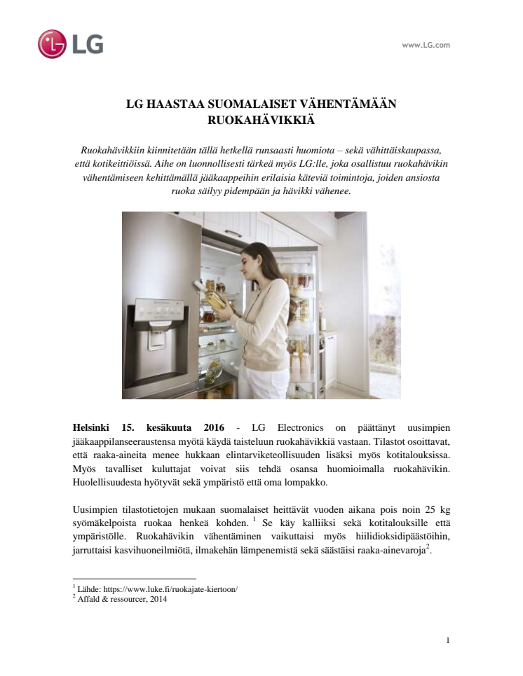 LG HAASTAA SUOMALAISET VÄHENTÄMÄÄN RUOKAHÄVIKKIÄ
