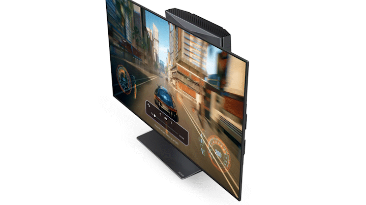 ‑toiminto mahdollistaa kuva- ja ääniasetusten optimoinnin lennosta pelityypin mukaan. Sisäänrakennetut eteenpäin suunnatut 40 watin kaiuttimet ja kaikua vaimentava mikrofoni tarjoavat erinomaiset eväät pelin sisäiseen viestintään.