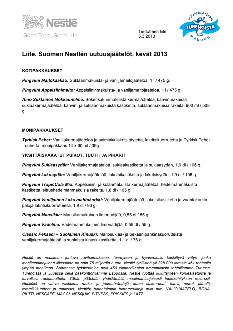 LIITE: Suomen Nestlén kevään 2013 jäätelöuutuudet