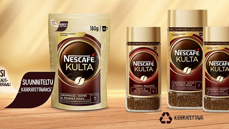 Vuosittain lähes 2,5 tonnia pakkausjätettä poistuu Suomen markkinoilta, kun Nescafé Kulta -pikakahvin täyttöpakkaus valmistetaan jatkossa ohuesta, yhdestä materiaalista valmistetusta muovilaminaatista, josta alumiinikerros on poistettu. Kahdellakymmenellä prosentilla keventynyt uusi, kierrätettäväksi sopiva pakkaus on innovaatio, joka tukee Nestlén tavoitetta käyttää vain kierrätettäviä tai uudelleenkäytettäviä pakkauksia vuoteen 2025 mennessä. Nyt tapahtuva pakkausmateriaalin vähennys ja kierrätettyvyyden lisääntyminen tulee koskemaan kaikkia Nescafé -pusseja ja -purkkeja ympäri maailmaa seuraavien parin vuoden aikana.