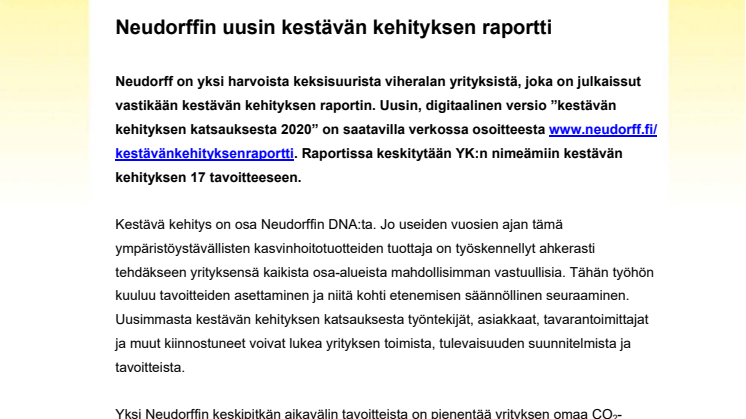 Koko raportin voi lukea täältä: www.neudorff.fi/kestävänkehityksenraportti.