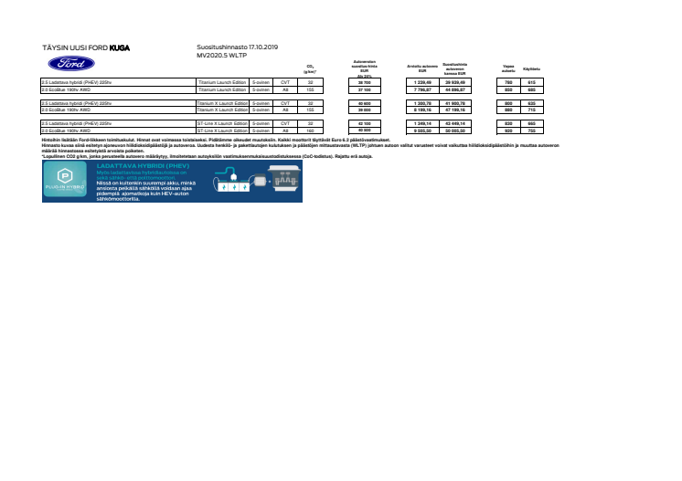 Täysin uusi Ford Kuga Launch Edition -asiakashinnasto 17.10.2019
