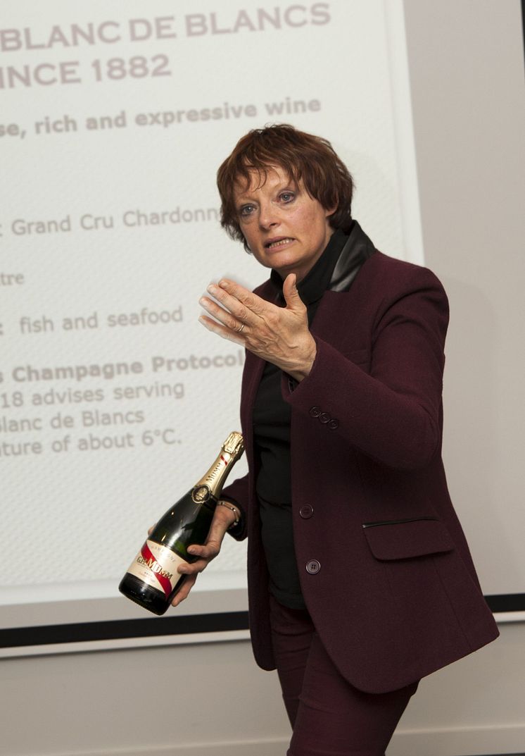 Ranskalainen brändikehitysjohtaja Agnès Jones G. H. Mumm -samppanjatalosta muistuttaa, että samppanja kannattaa tarjoilla tarpeeksi kylmänä, kahdeksan asteisena.