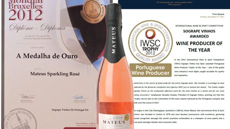Mateus Sparkling Brut Rosé- kuohuviini on voittanut kultaa vuonna 2010 ja 2012 ”Concours Mondial de Bruxelles”-viinikilpailussa. Tämän kultamitalin lisäksi tuottaja Sorgape valittiin Vuoden Viinituottajaksi 2012 kansainvälisessä IWSC kilpailussa.