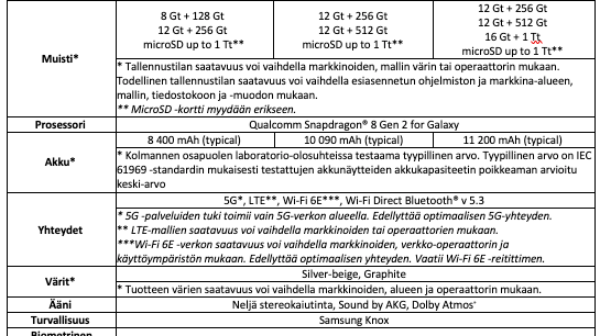 Lisätietoa löydät osoitteesta https://www.samsung.com/galaxy-tab, https://www.samsungmobilepress.com tai https://news.samsung.com/global.