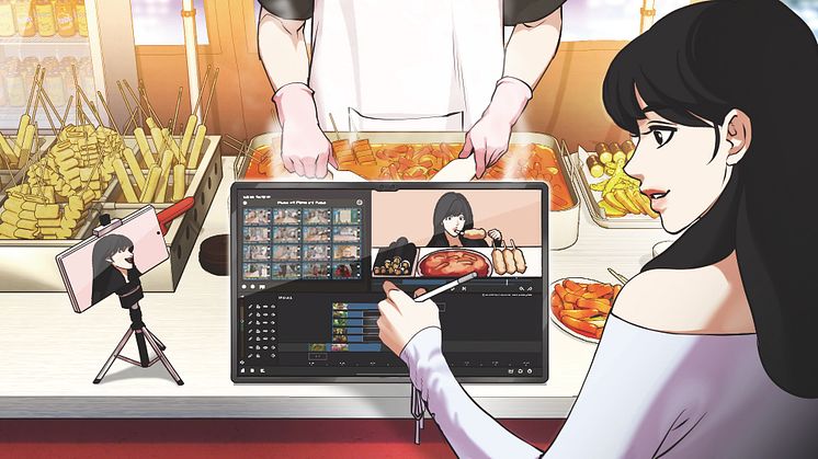 Ammattitason LumaFusion[14]-videoeditointisovellus tekee työstä helppoa, kun käyttäjä haluaa luoda jaettavaa sisältöä. Galaxy-älypuhelimen kameralla otetut kuvat ja videot – jopa suuret tiedostot – voi helposti jakaa Galaxy Tab S9 -sarjaan Quick Share[15]-toiminnon avulla. LumaFusion hyödyntää Galaxy Tab S9 Ultran laajaa näyttöä ja säilyttää videoiden tarkkuuden.