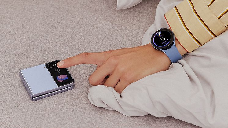 Mukavan uniympäristön luominen voi vaikuttaa unenlaatuun, ja pienilläkin häiriötekijöille voi olla suuri vaikutus. Siksi Samsung on helpottanut Galaxy Watchin yhdistämistä useisiin laitteisiin. Kun käyttäjän Galaxy Watch havaitsee, että käyttäjä on nukahtanut, SmartThings mahdollistaa muiden yhteydessä olevien laitteiden kytkemisen pois päältä uniympäristön parantamiseksi[6]. Sleep Mode hiljentää ilmoitukset ja himmentää käyttäjän puhelimen ja kellon näytöt nopeasti. Lisäksi One UI 5 Watch -käyttöliittymä hyödyntää infrapunasensoria vihreän LED-valon sijaan, mikä vähentää häiriötekijöitä entisestään.