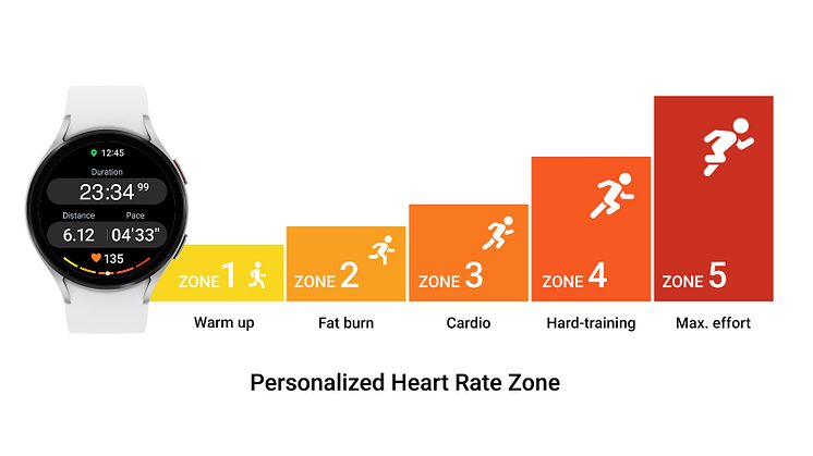 One UI 5 Watch -käyttöliittymä tuo mukanaan muun muassa henkilökohtaiset sykealueet kuntoilun tueksi. Useiden muiden räätälöityjen juoksuominaisuuksien, kuten reaaliaikaisen juoksuanalyysin sekä räätälöidyn intervalliharjoitusohjelman, lisäksi tämä uusi ominaisuus analysoi yksilöllisiä fyysisiä ominaisuuksia[7] ja luo käyttäjälleen viisi optimaalista harjoitusintensiteettitasoa (lämmittely, rasvanpoltto, aerobinen liikunta, kova treeni ja maksimiteho). Tämä mahdollistaa käyttäjien omien tavoitteiden asettamisen, aina rasvanpoltosta maksimitehojen treenaamiseen.