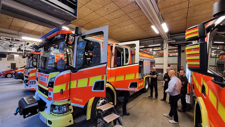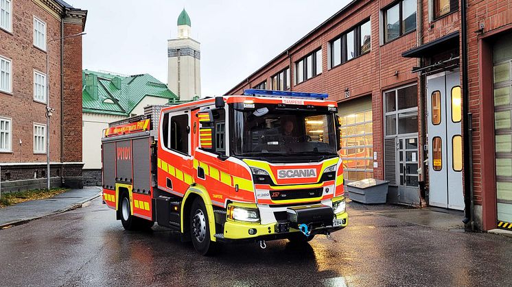 Tällä hetkellä Pirkanmaan pelastuslaitoksella on 250 erilaista ajoneuvoa. Nyt käyttöön otettava uusin sammutusauto on sadas alueen Scania ja raskaimmissa pelastusajoneuvoissa Scania onkin alueella selkeä ykkönen. ”On meillä historiassa ollut muitakin merkkejä paloautoina, mutta nykyisin Scania on meillä ykkönen”, kertoo pelastuslaitoksen kalustoinsinööri Heikki Seppälä. ”Scania on luotettava, erinomainen ajaa ja Scanian miehistöohjaamo on selkeästi markkinoiden paras”, lisää Seppälä.