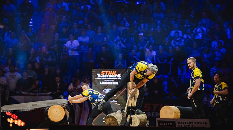 Stuttgartin Porsche-Arena isännöi vuoden 2023 TIMBERSPORTS®-MM-kilpailuja viikonloppuna 3.–4. marraskuuta. Perjantain joukkuekilpailussa Ruotsin maajoukkue sijoittui yhdeksänneksi, ja Norja nousi yhden sijan viime vuodesta sijoittuen kymmenenneksi. 22-vuotias ruotsalainen Emil Hansson pääsi otsikoihin lauantain yksilökilpailussa. Hän tyrmistytti suuret maat voittamalla Ruotsin ja Pohjoismaiden ensimmäisen hopeamitalin.