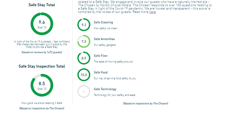 Nordic Choice Hotels on sitoutunut yhdessä Chosen-ohjelmaan valittujen asiakkaidensa kanssa raportoimaan Covid-19 tartuntojen torjuntatoimenpiteistä hotelleissaan kaikkialla Pohjoismaissa. Arvioinnit tullaan julkaisemaan Nordic Choicen kotisivuilla säännöllisesti.