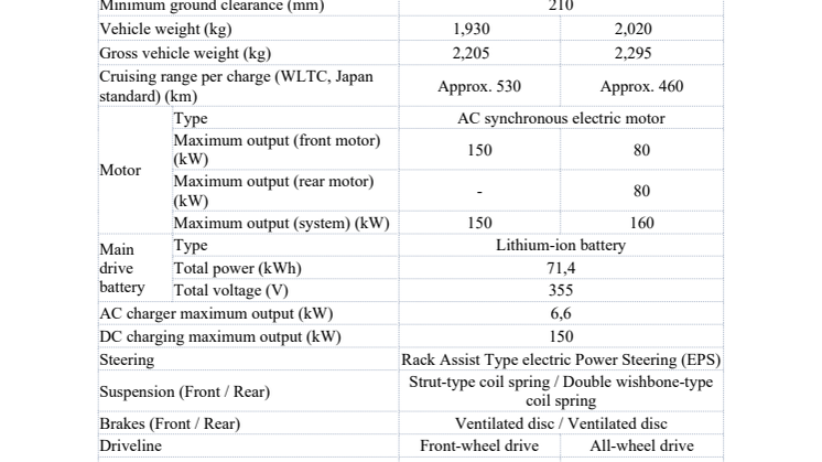 - High capacity battery packs are placed under the floor as it is a BEV, and by utilizing that battery as a part of the structure, a low center of gravity and high body strength and rigidity are realized.