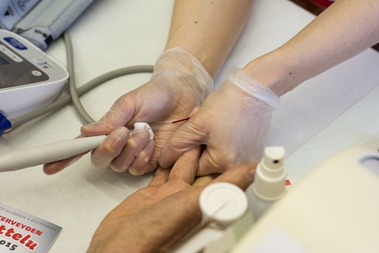 Kokonaiskolesterolin mittausta varten otetaan verta sormenpäästä