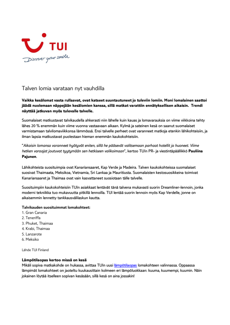 Vaikka kesälomat vasta rullaavat, ovat katseet suuntautuneet jo tuleviin lomiin. Moni lomalainen saattoi jäädä nuolemaan näppejään kesälomien kanssa, sillä matkat varattiin ennätyksellisen aikaisin. Trendi näyttää jatkuvan myös tulevalle talvelle.