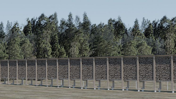 Grönlund-Nisusen paikallisia materiaaleja ja halkopinoestetiikkaa hyödyntävä installaatio Mutkalammin tuulipuistoon