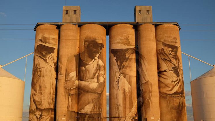 Taiteilija on aiemmin maalannut muraalin hylätyn viljasiilon julkisivuun Australian Victorian osavaltiossa sijaitsevaan Brimin kylään. 30 metriä korkeassa teoksessa on van Heltenin tyylille ominaisesti neljän ihmisen muotokuva.