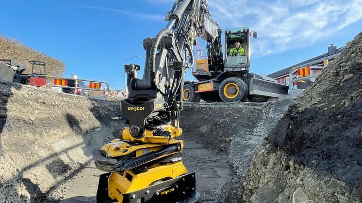 L’utilisation d’un compacteur de sol sur une pelle hydraulique est une pratique qui se répand de plus en plus. En plus de diminuer le nombre de machines et d’outils nécessaires, cela augmente la sécurité en éliminant le besoin d’avoir des ouvriers dans le fossé que les vibrations risquent de faire s’effondrer. Fini aussi les levages de compacteurs à conduite manuelle avec une chaîne ou une élingue. Les conditions de travail sur le chantier – question particulièrement chère à engcon – deviennent ainsi beaucoup plus sûres. De plus, cela permet d’élargir la zone de travail puisqu’il est possible de pivoter et d’incliner le compacteur pour suivre le relief.