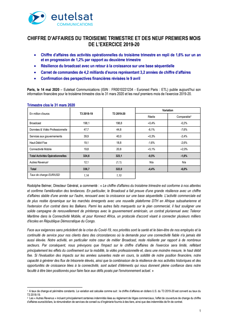 CHIFFRE D’AFFAIRES DU TROISIEME TRIMESTRE ET DES NEUF PREMIERS MOIS DE L’EXERCICE 2019-20