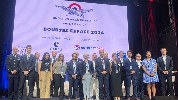 Pour la 4ème année consécutive, jeudi 27 juin 2024, la Fondation Ailes de France a remis ses Bourses ESPACE à des jeunes étudiants particulièrement motivés pour les aider à mener à bien leur projet de formation supérieure dans le secteur spatial. En partenariat avec le CNES et Eutelsat Group, avec le soutien, pour cette édition, de la Fondation Antoine de Saint Exupéry, 15 bourses d’un montant unitaire de 5 000 € ont été attribuées.Les lauréats 2024 sont 9 étudiants et 4 étudiantes issus de filières ingénieur (ESTACA, ICAM, INP-ENSEEIHT, IPSA, ISAE SUPAERO, Ecole CentraleSupélec, Ecole Centrale de Nantes, Ecole des Mines d’Alès).