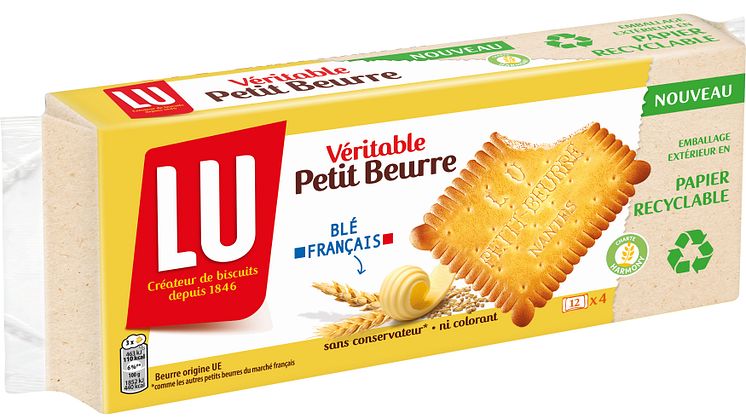 Cet emballage innovant en mono-papier pour les biscuits "Véritable Petit Beurre", "Petit Brun Extra" et "Thé" de LU, va permettre à Mondelēz International de réduire l'utilisation de plastique vierge d'environ 63% par paquet1 en France, en Belgique et au Royaume-Uni. Ces produits sont dotés d'un nouvel emballage extérieur en papier, conçu pour être recyclé et certifié FSC®2. Fruit de nombr