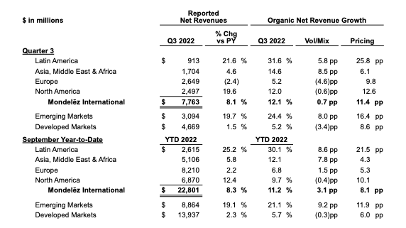 CHICAGO, Ill. – November 1, 2022 – Mondelēz International, Inc. (Nasdaq: MDLZ) today reported its third quarter 2022 results.