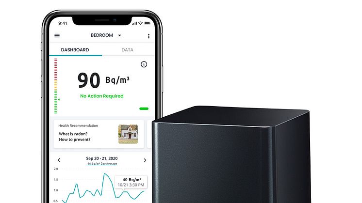 - Connecté – L’application smartphone (Android, iOS) permet de contrôler et de partager facilement les niveaux de radon en temps réel.