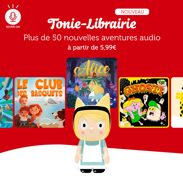 Cette librairie met à disposition plus de 50 nouveaux contenus pour les 3 à 9 ans, à acheter sur tonies.com puis à téléverser sur la figurine Tonie Créatif systématiquement livrée avec chaque Toniebox ou sur l’un des neufs autres Tonies Créatifs disponibles à l’achat.