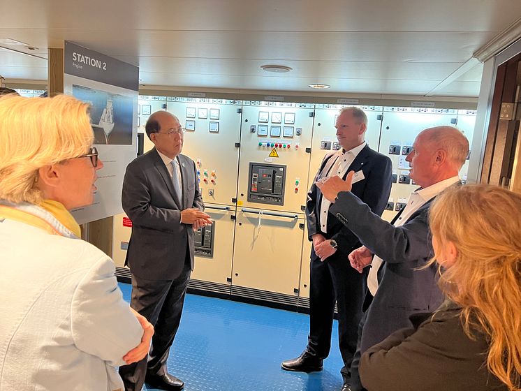 IMO Secretary-General Kitack Lim is guided around Fure Vinga by Furetank CEO Lars Höglund.