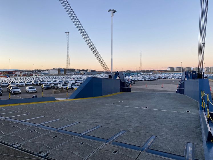 Gothenburg roro and car terminal seen from ramp on Auto Achieve.