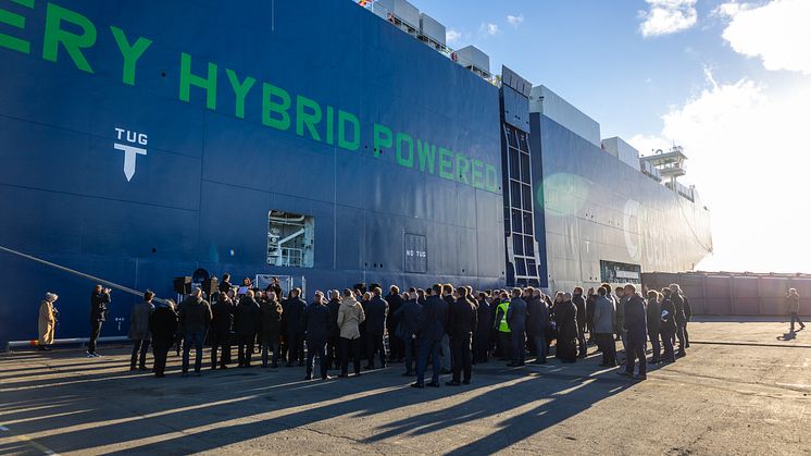 A newly built ship with special environmental and climate characteristics was christened at the Port of Gothenburg on Wednesday. The vessel in question is an LNG/battery hybrid ship that already today meets IMO's 2030 target for shipping's carbon dioxide efficiency. The vessel will call at the Port of Gothenburg every week.