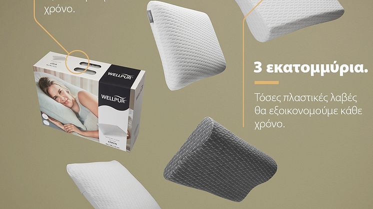 Τον Μάρτιο του 2023, όλα τα εργονομικά μαξιλάρια της συλλογής WELLPUR της JYSK θα διατίθενται στα καταστήματα και online με βελτιωμένη συσκευασία και παραγωγή, κάτι που εξοικονομεί εκατομμύρια πλαστικές λαβές και μεταλλικά φερμουάρ κάθε χρόνο.
