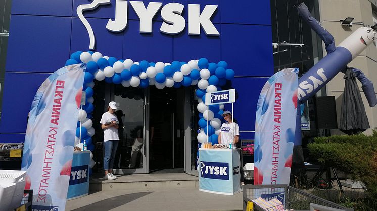 Η JYSK άνοιξε το πρώτο της κατάστημα στην Αθήνα τον Σεπτέμβριο του 2015. Στα χρόνια που ακολούθησαν η JYSK προχώρησε σε εντατική ανάπτυξη του δικτύου της που με τα δύο νέα καταστήματα στην Ζάκυνθο και τη Χαλκιδική θα αριθμεί πλέον 52 φυσικά καταστήματα στη χώρα μας. Παράλληλα λειτουργεί με μεγάλη επιτυχία το ηλεκτρονικό κατάστημα JYSK.gr που αποτέλεσε σημαντικό πυλώνα ανάπτυξης την δύσκολη περίοδο της πανδημίας και συνεχίζει να συμμετέχει με ποσοστό άνω του 10% στο συνολικό τζίρο της εταιρείας.